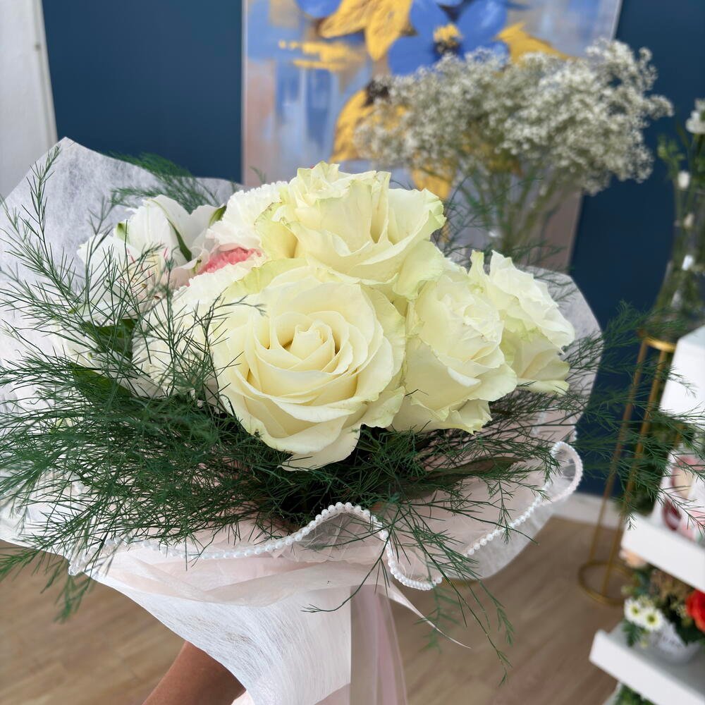 Un delicado bouquet que transmite pureza y serenidad, ideal para cumpleaños, aniversarios o simplemente para alegrar el día. Su diseño minimalista y elegante lo convierte en un detalle perfecto para cualquier ocasión. 18,00 € IVA Incluido -